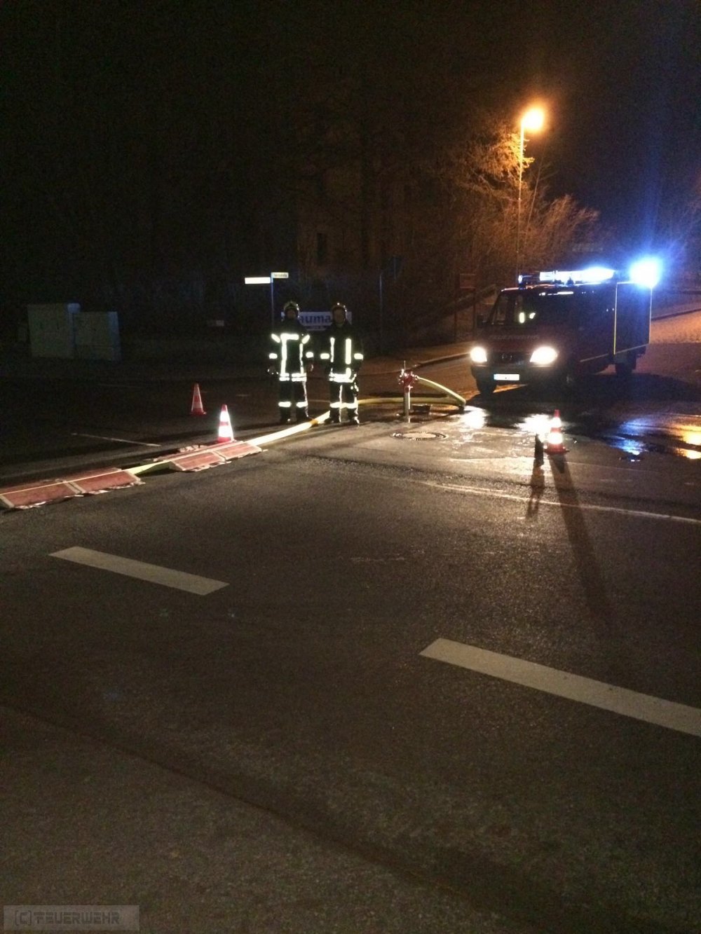 - Verlegung von 150 B-Rollschläuchen in Richtung Brandstelle mittels Schlauchanhänger