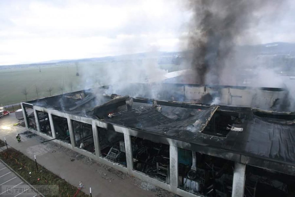 - Großbrand einer Industriehallle zwischen den Ortschaften Hörselgau und Waltershausen