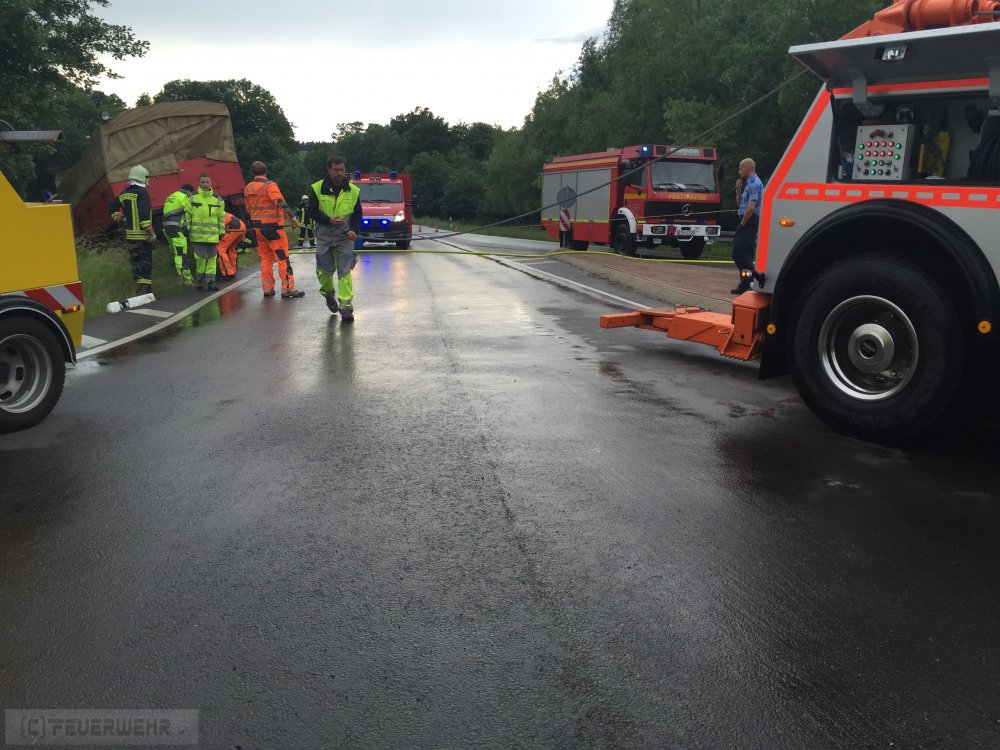 - Bergung des LF8 durch 2 Abschleppunternehmen mittels schwerer Technik durchgeführt