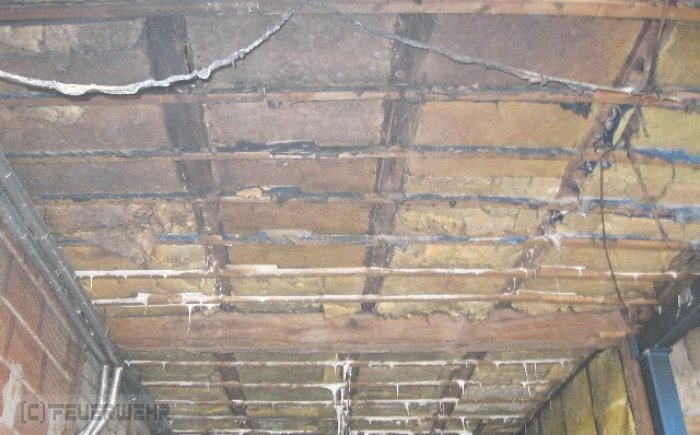 Durch eine Verpuffung wurde die Scheune im Deckenbereich beschädigt.