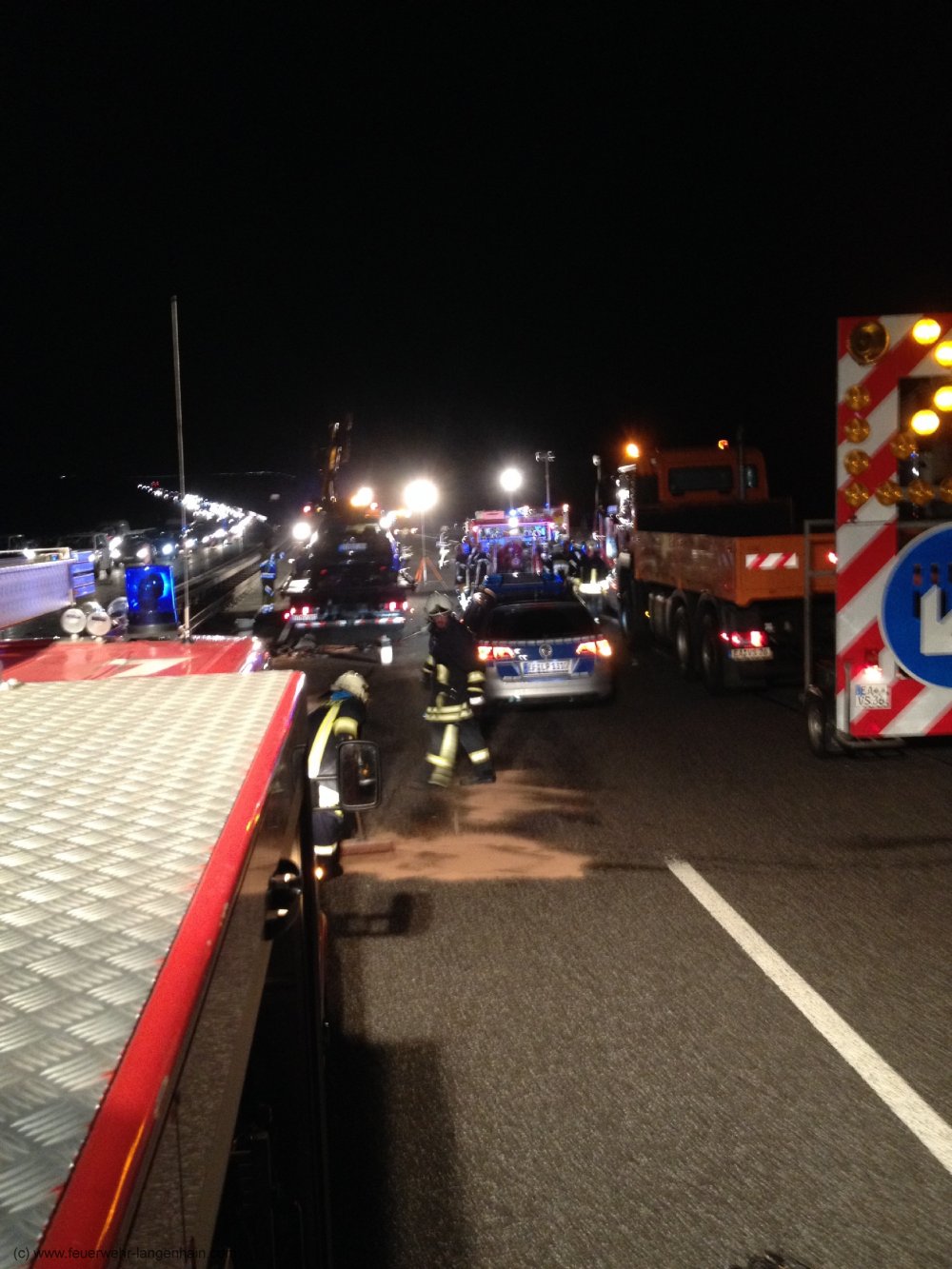 Die Einsatzstelle wurde bei Eintreffen umfangreich ausgeleuchtet. Anschließend konnte mit den Bergungsarbeiten auf beiden Richtungsfahrbahnen begonnen werden. Hierzu musste ebenfalls die Autobahn in Richtung Dresden kurzzeitig gesperrt werden.