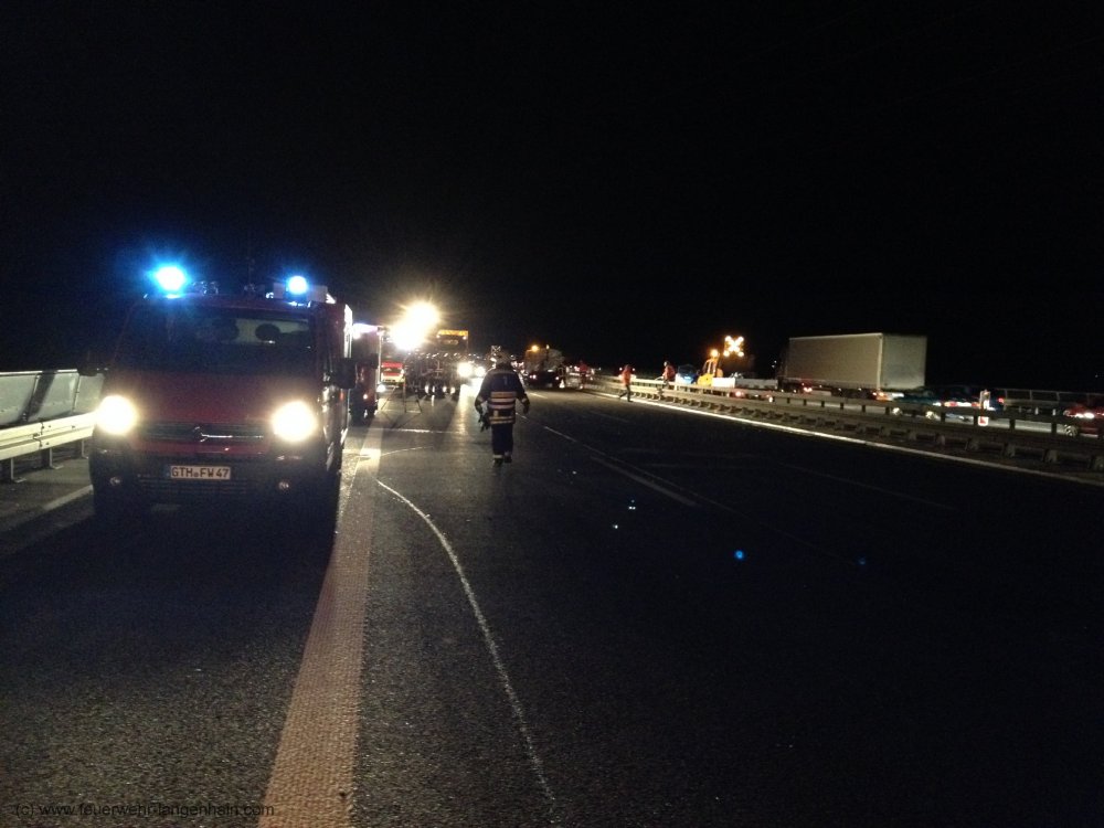 Aufgrund der über mehrere Fahrspuren ausgedehnten Unfallstelle wurden die Feuerwehren Wahlwinkel und Langenhain nachalarmiert. Die Kräfte der Stützpunktwache sowie der Rettungsdienst waren bereits vor Ort.