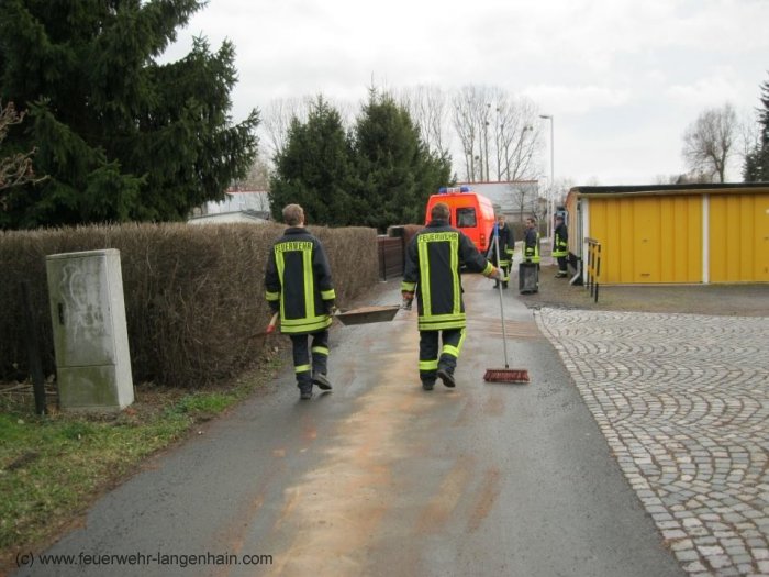 -Beseitigung einer größeren Ölspur im Stadtzentrum von Waltershausen